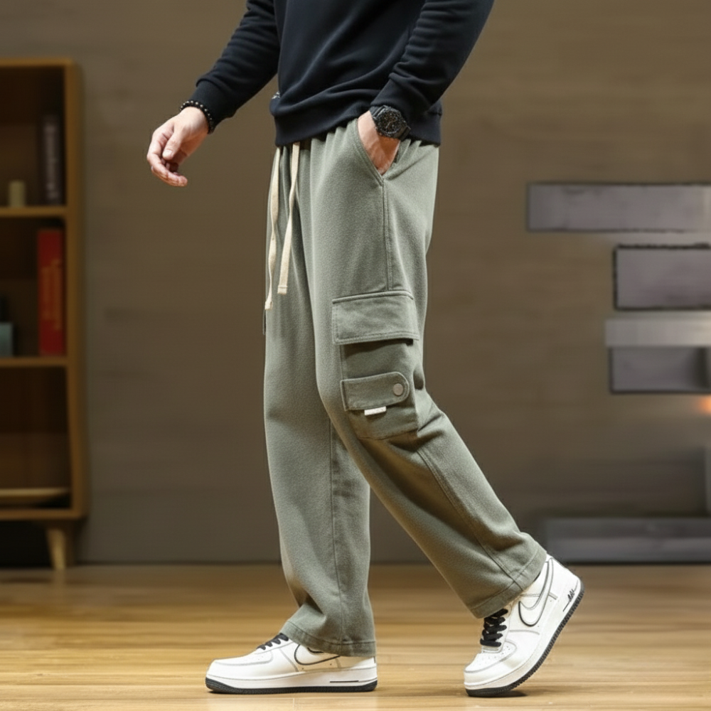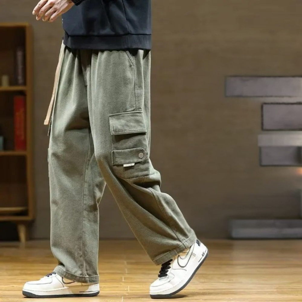 Heren cargo broek met wijde pijpen en losse pasvorm
