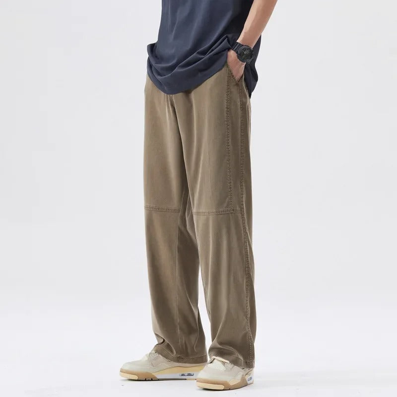 Maak kennis met de Maison Livienne herenbroek met wijde pijpen, een eigentijdse en comfortabele casual broek met een losse pasvorm en een lichtgewicht materiaal voor een elegante, modieuze stijl. Deze broek is zeer geschikt voor ontspannen dagelijks gebruik, sociale uitjes of vakanties in warm weer, wanneer comfort en ademende stoffen voorop staan. Was de broek op een zachte, koele stand in de wasmachine om de kwaliteit van de stof te behouden, vermijd drogen op hoge temperatuur en strijk indien nodig op een lage stand. Combineer deze wijde broek met een effen katoenen T-shirt, eenvoudige sneakers en een minimalistisch polshorloge voor een strakke, samenhangende look.