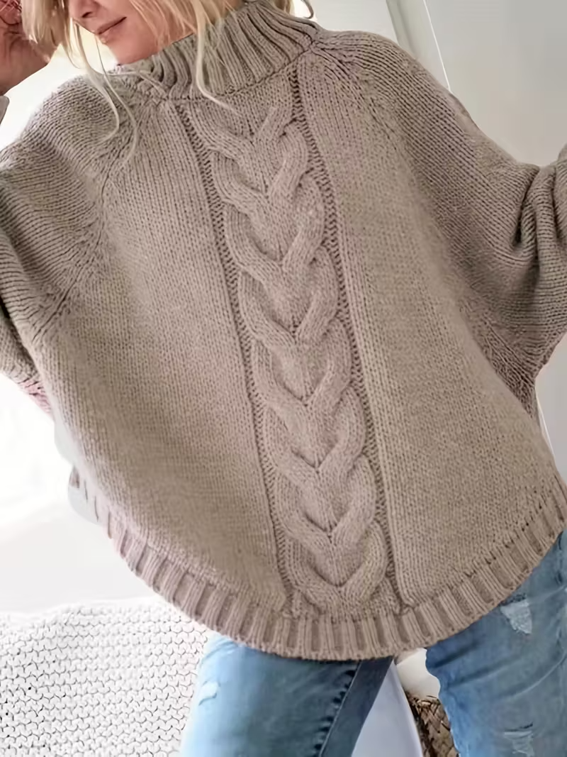 Dames trui met kabelpatroon losse pasvorm en hoge hals